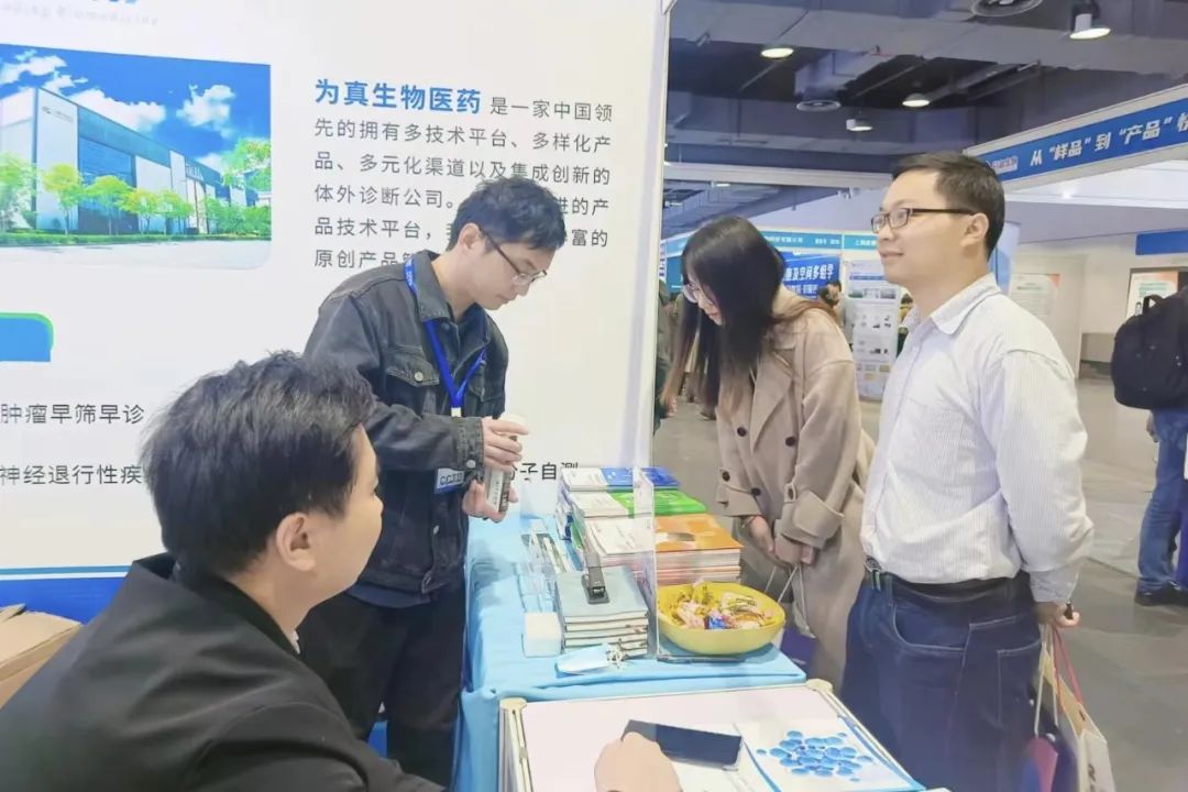 為真團隊與來訪專家、進行學術產品交流,展臺人氣爆棚,咨詢者眾多,也讓大家都了解到了為真生物的技術服務及眾多產品。會議現場有很多老客戶也到訪展臺,與為真生物技術團隊親切互動,分享合作體驗和項目進展,給現場專家們留下了深刻的印象。