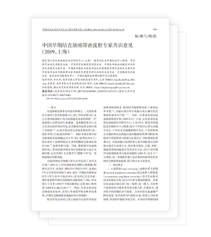 中國早期結直腸癌篩查流程專家共識意見(2019,上海)